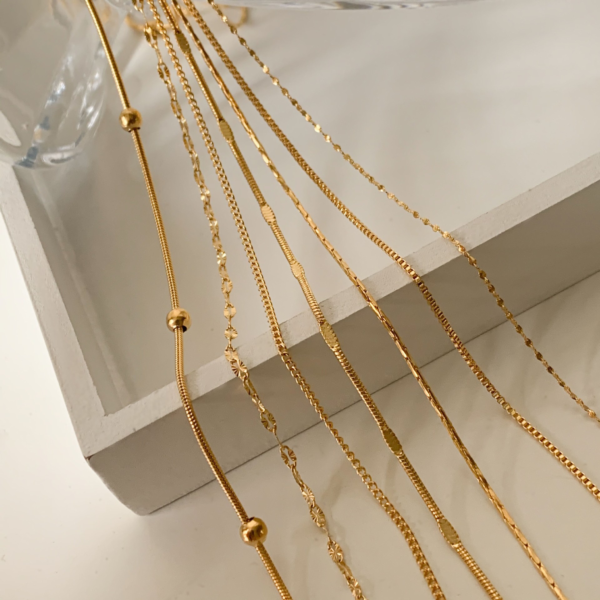 十字链盒子链蛇骨链压花链项链满天星钛钢镀24K金色太阳花锁骨链